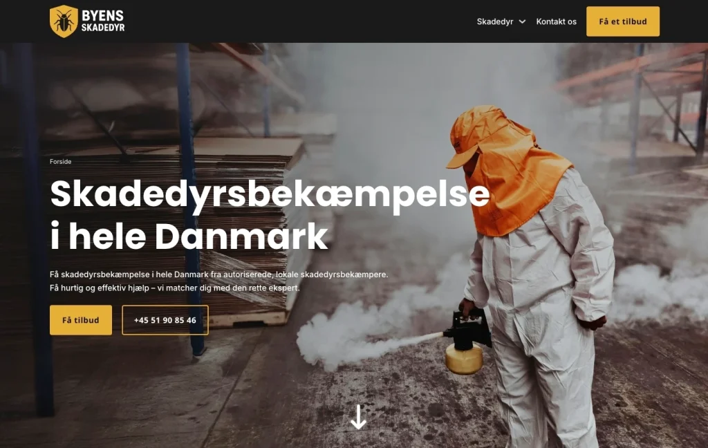 Byens Skadedyr skulle bruge en informativ og overskuelig hjemmeside, hvor besøgende hurtigt kan få fat i en lokal skadedyrs bekæmper. Derfor udviklede vi denne